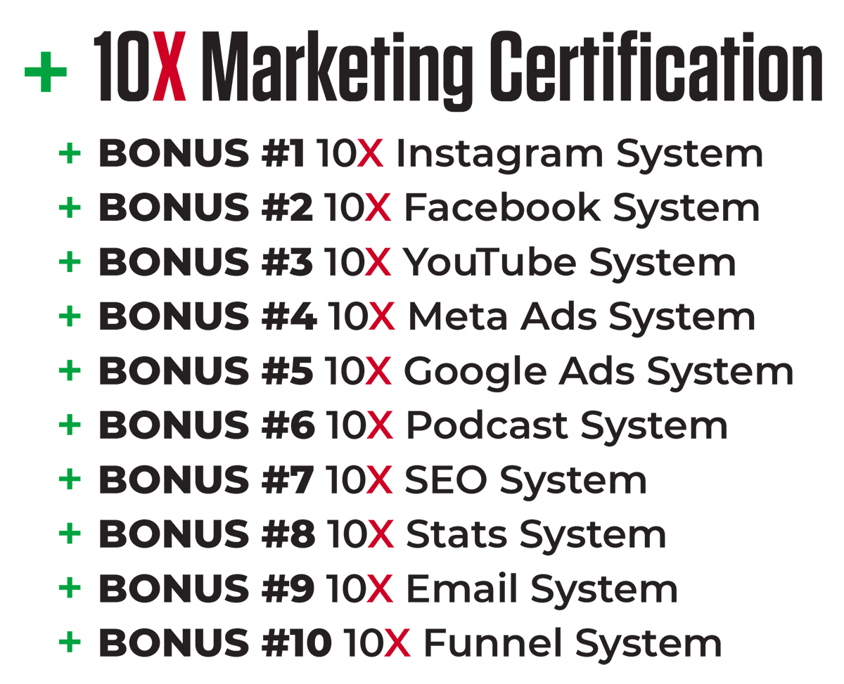 It’s all step-by-step and proven to produce rapid results. The best part: once you’re 10X Marketing Certified you’ll instantly command more revenue and respect.